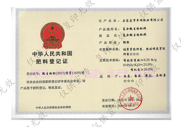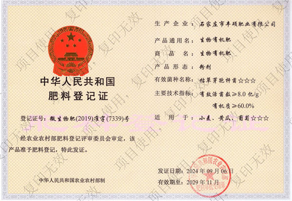 石家莊市豐碩肥業(yè)有限公司是一家集新型肥料的研發(fā)、制造、營銷、服務(wù)于一體的高新技術(shù)企業(yè),公司自2008年創(chuàng)辦以來,一直致力于新型肥料的技術(shù)研發(fā)和市場推廣。公司組建了豐碩新型肥料研究中心(院士專家企業(yè)工作站),自主知識產(chǎn)權(quán)研發(fā)團(tuán)隊(duì)專業(yè)科研人員20余人,獲得了多項(xiàng)肥料國家發(fā)明專利。公司目前已擁有發(fā)酵類有機(jī)肥、微生物菌劑、生物有機(jī)肥、土壤調(diào)理劑、大量元素水溶肥、含腐植酸肥料、含氨基酸肥料、中微量元素肥料等8大品類,“金維克”、“豐碩沃農(nóng)”等2大自有品牌,擁有20多個(gè)暢銷品種。目前,我公司已經(jīng)通過了“ISO9001 質(zhì)量管理體系認(rèn)證”、“ISO14001 環(huán)境管理體系認(rèn)證”、“OHSAS18001 職業(yè)健康管理體系認(rèn)證”。...